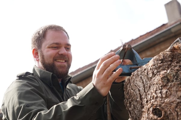 Die Herstellung unserer Grilltonne wurde vom BEEF!-Redakteur und zwei Profi-Fotografen begleitet. Der Redakteur reiste aus Hamburg an, das Fototeam aus der entgegen gesetzten Richtung: Aus München. Als Set diente eine verlassene Gastwirtschaft in beschaulichen Örtchen Lebenhan, nahe Bad Neustadt/Saale.