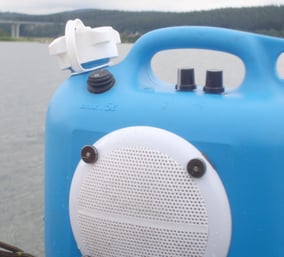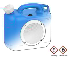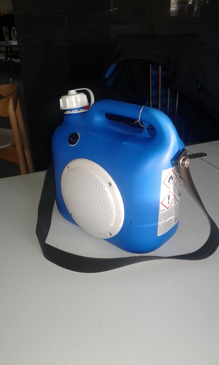 Das Konzept sah zwei wasserdichte Outdoor-Lautsprecher vor, die in einen handelsüblichen Benzinkanister eingesetzt wurden. Die Ausschnitte für die Lautsprecher sind die einzigen Öffnungen, welche aber durch den Einau der Lausprecher wieder abgedichtet werden.