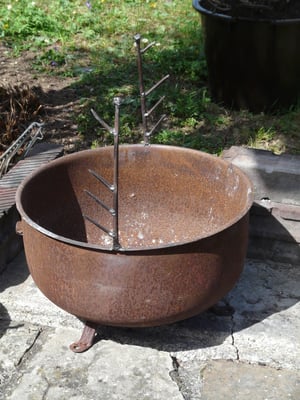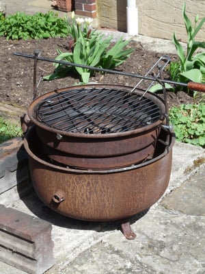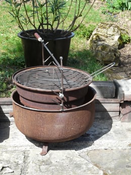 Innerhalb der nächsten Wochen hatte sich das Gebilde aus verrosteten Stahl als favorisierter Lagerfeuertopf etabliert. Alsbald kam die Idee auf, die Lagerfeuerschale in einen vollwertigen Grill zu verwandeln. Es sollte ein ganz spezieller, einmaliger Grill werden.
