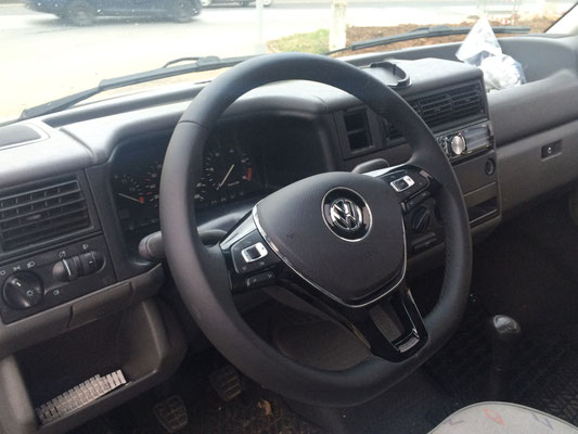 Mein treuer Weggefährte "Kurt", ein 25 Jahre alter VW T4 (2,5l TDI) hatte gut 300.000 Kilometer auf dem Tacho, als ich ihm ein neues Lenkrad spendierte. Diesen Umbau kann ich uneingeschränkt weiterempfehlen, denn er brachte den Fahrkomfort auf ein ganz neues Level.