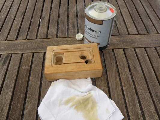 Der Oberfläche des Holzes wurde nach der Bearbeitung mit Leinölfirnis versiegelt.