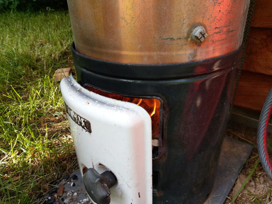 Herzstück der Poolanlage ist die Sandfilteranlage, welche direkt mit einem alten Badeofen verbunden ist. Der überdimensionierte Durchlauferhitzer sorgt für angenehme Wellness-Temperaturen bei jedem Wetter.