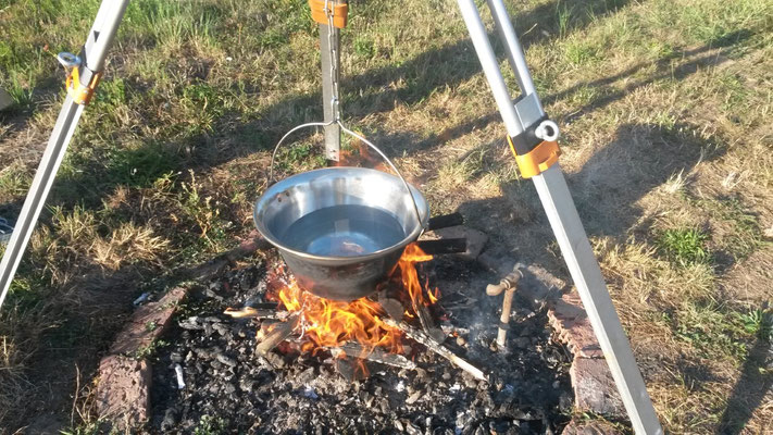 Der mobile Schwenkgrill lässt sich sehr vielseitig verwenden, ist schnell aufgebaut und lässt sich leicht verstauen. Darum gehört dieser Grill zu unserer Grundausstattung und ist bei fest jeder Veranstaltung des Chaos Camping Clubs mit am Start.