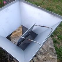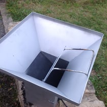 Ungewollt kann die Glut unter keinen Umständen nach unten aus dem Trichter bzw. dem Kamin fallen. Um ganz sicher zu gehen, wurde am unteren Ende des Kamins ein zusätzliches Blech eingeschweißt. Damit sollte es kein Problem sein, für dieses Grillgerät ein TÜV-Zertifikat zu erhalten. Sollte je eine kommerzieller Vertrieb in Frage kommen.