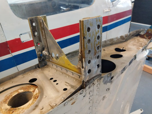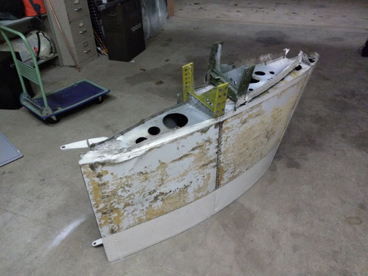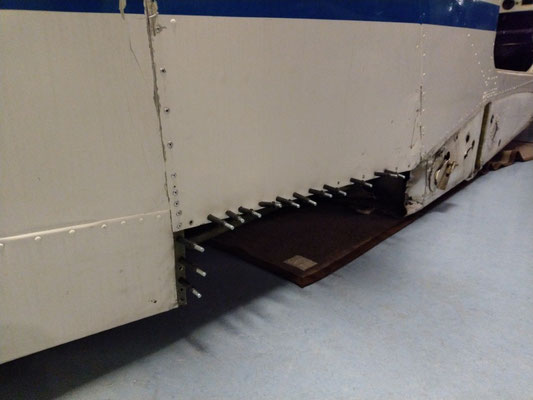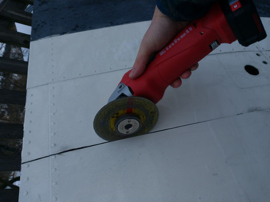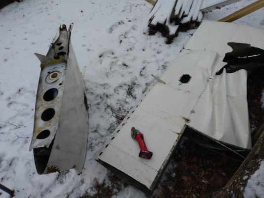 Ein Stummel der Tragfläche sollte wieder an den Rumpf montiert werden, um das Betreten der Kabine zu erleichtern. Also wurde der Flügel wieder zusammen gesetzt und fachmännisch (aber sicher nicht flugtauglich) miteinander verschweißt.