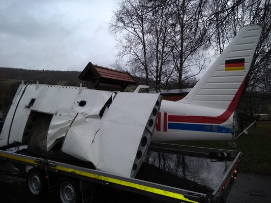 Nach dem Austausch mehrerer Emails machte mir der Verkäufer am Telefon glaubhaft, er hätte wonach ich suchen würde. "Ein Flugzeugrumpf für ein Baumhaus? Kein Problem. Beispielsweise könnte man sich etwas aus den Rümpfen zweier Piper PA34 Seneca II zusammenbasteln. Das wäre dann auch groß genug. Und der Transport ist ebenfalls machbar..."