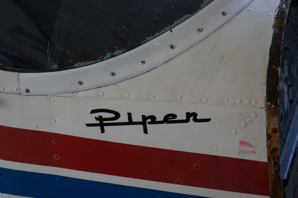 Am Heck der Piper befindet sich das Typenschild. Demnach handelt es sich bei dem Flugzeug um eine Piper PA28-140 mit der Seriennummer 28-26712, Hergestellt in Vero Beach, Florida, US. Daraus lässt sich ermitteln, dass es 1970 vom Stapel lief.