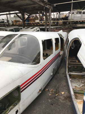 Wir vereinbarten einen Besichtigungstermin und ein paar Tage später standen wir mitten auf einem richten Flugzeugfriedhof. Niemals hätte ich erwartet, so etwas mitten in Deutschland vorzufinden. Überall standen Rümpfe, Flügel und allerhand Einzelteile von Kleinflugzeugen. Ich war schwer beeindruckt.