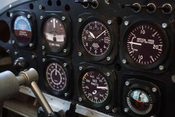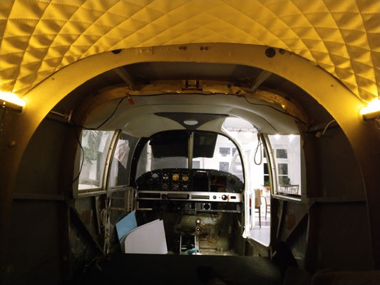 Der vordere Bereich, das Cockpit, wurde mit echten aber auch selbst gebastelten Instrumenten (Mock-up aus dem 3D Drucker) dekoriert. Ein Ipad dient als Flugsimulator, darauf fahren vor allem die jüngeren Besucher voll ab.