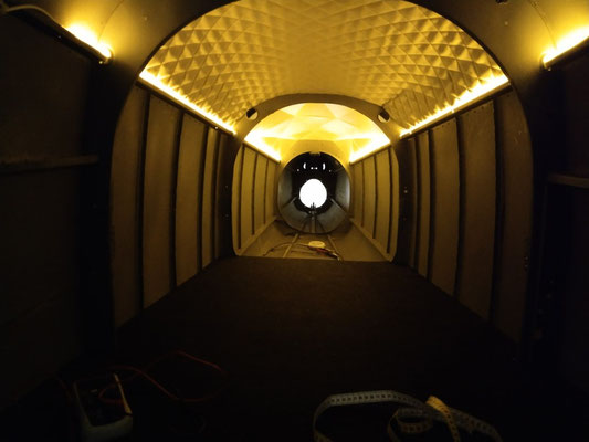 Die Wände und Decken des Flugzeugs wurden mit gesteppten Kunstleder und Bezugsstoffen kaschiert. Im Verbindung mit einer dimmbaren Innenbeleuchtung entsteht eine einzigartig bezaubernde Optik wie von einer anderen Welt. Perfekt um einfach mal so richtig abzuschalten und die Welt zu vergessen.